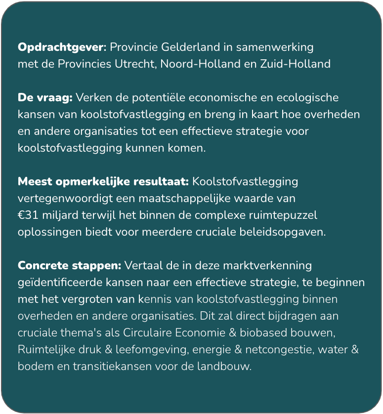 New Economy onderzocht in opdracht van een brede coalitie van overheden hoe koolstofvastlegging vandaag al ingezet kan worden – en waar het meeste maatschappelijk én economisch rendement te behalen valt.